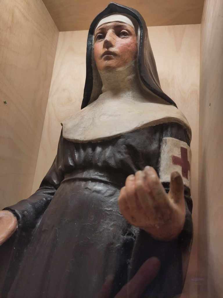 24. února letos vyšlo na obzvlášť pěkný den. Takový, kdy lidé vytáhnou sluneční brýle a vy se ptáte, kde já je asi mám a proč mě nenapadlo si je vzít? Slunce se měkce činilo i v muzejním bezčasném matrixu, do kterého jsem vstoupila ústeckým vchodem. Proplouvám místnostmi jako potápěč u mořského dna, kopíruju labyrint vitrín a panelů, místnosti odlišuji mírou šerosvitu, hltám ticho. Zanesené závity mi z výstavy „Naši Němci“ neberou prakticky nic. Dokud nenatrefím na letáček z první světové války, který skulinkou pronikne jako páčidlo do mezírky a dveře vylomí i s pantem. Oznámení ve své době jako poutače provázely papírmašové figuríny, třeba milosrdná sestra: